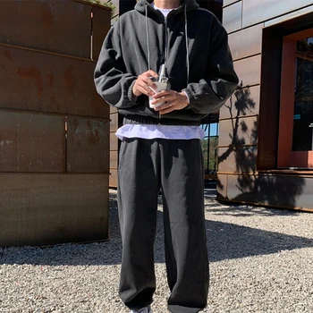 ชุดเสื้อฮู้ด350GSM วินเทจของผู้ชายชุดวอร์มผ้าคอตตอนแบบถักตามสั่งชุดวอร์มผ้าคอตตอนเนื้อเรียบ