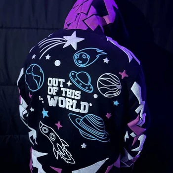 ชุดเสื้อมีฮู้ดสำหรับผู้ชายชุดเสื้อฮู้ดผ้าเกล็ดปลาแบบโอเวอร์ไซส์ปักลาย