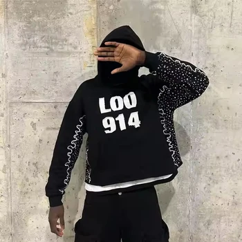 Oem כבד streetwear גברים גברים קפוצ 'ון 100% כותנה משובח שנשטף במצוקה קפוצ' ון מותאם אישית צרפתית דפוס טרי הדפס קפוצ 'ון גברים