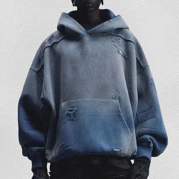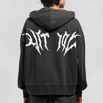 เสื้อฮู้ดผู้ชายแนวสตรีทผ้า100% มีฮู้ดผ้าฝ้ายวินเทจฟอกสีลายเทอร์รี่ออกแบบได้ตามต้องการ