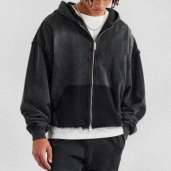 High Quality Men Hoodies Custom Acid Wash Hoodies Manufacturers Heavyweight 500gsm Zip up Hodoies Custom Boxy Hoodie for Men